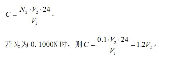 用0.1000N的Na2S2O3滴定,待溶液呈淡黃色時,加濃度為1%淀粉指示劑數滴使溶液呈蘭褐色,繼續使用0.1000N的Na2S2O3滴定至無色。記下Na2S2O3用量。